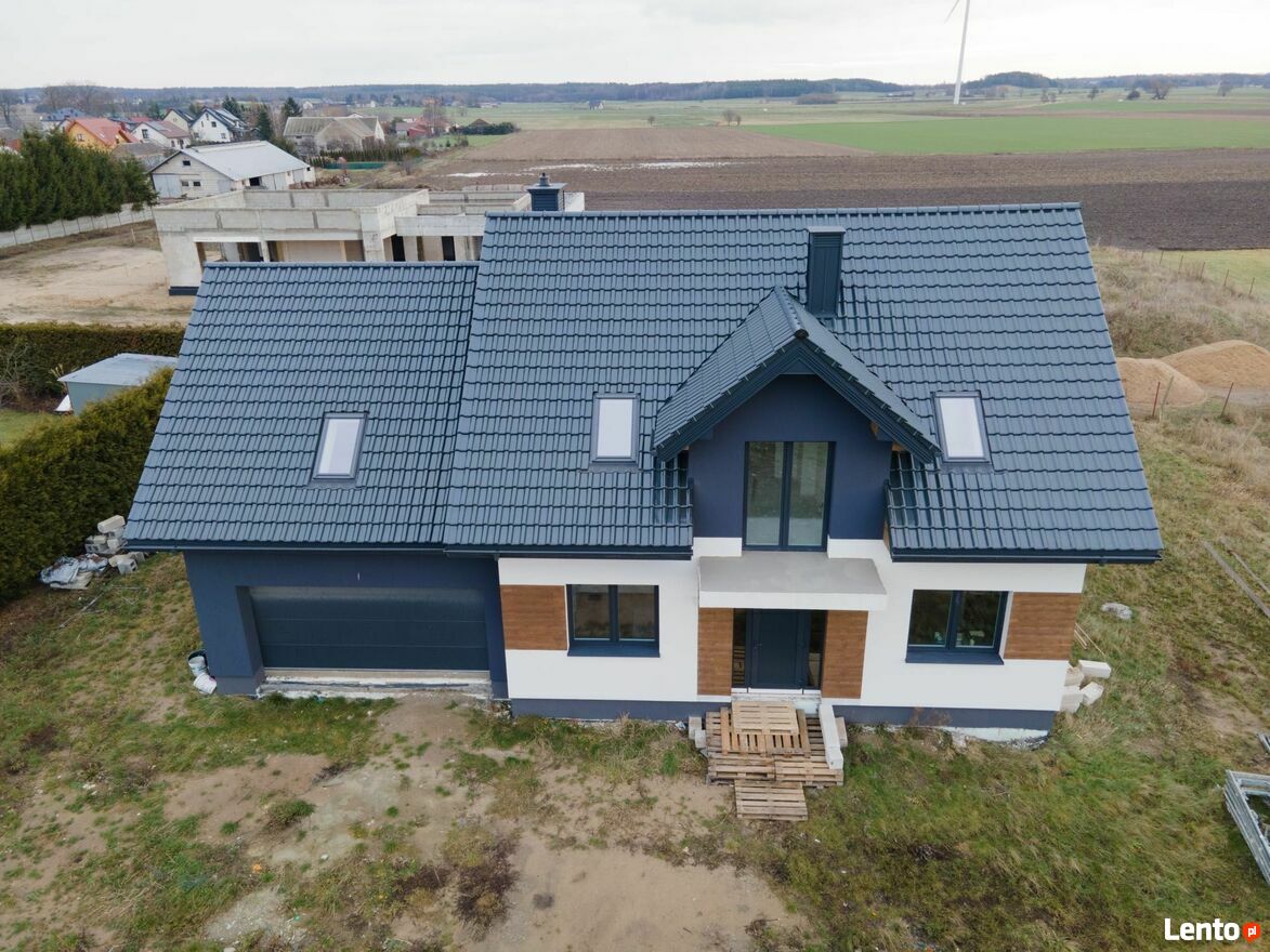 Nowoczesny dom 210 m² z dużą działką – Grzybowo, 5 min od CiechanowaDom wybudowany zgodnie z projektem Dom dla Ciebie 1 z garażem dwustanowiskowym lustro.