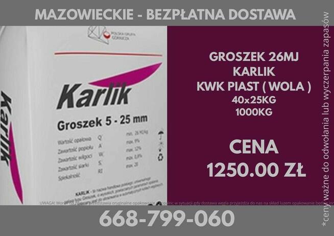 Polski Węgiel KWK PIAST ( WOLA ) : - WĘGIEL GROSZEK KARLIK 26 MJ (5-25) Paleta : 40x25kg Cena : 1250 zł ( ...
