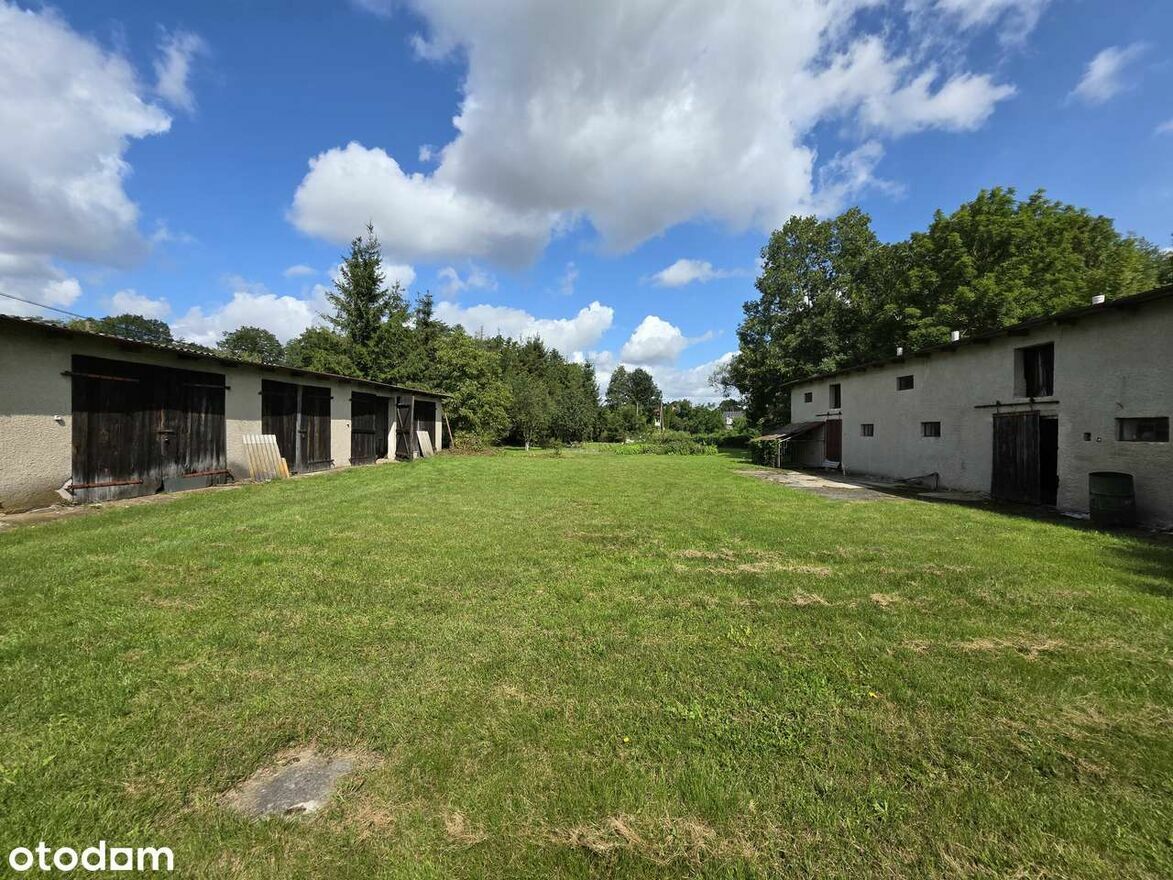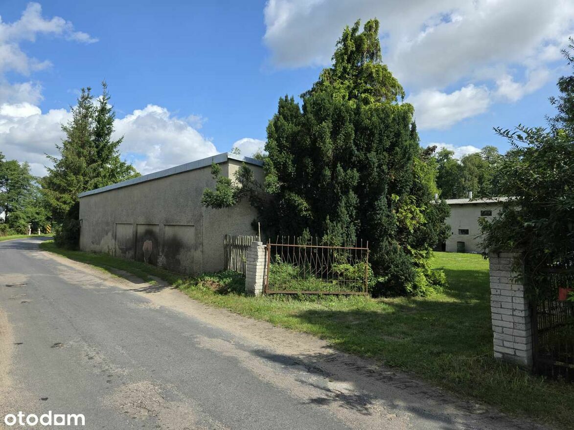 - Na działce znajdują się dwa budynki gospodarcze o powierzchni 146m2 i 199m2, garaż, kanał dla warsztatu samochodowego.