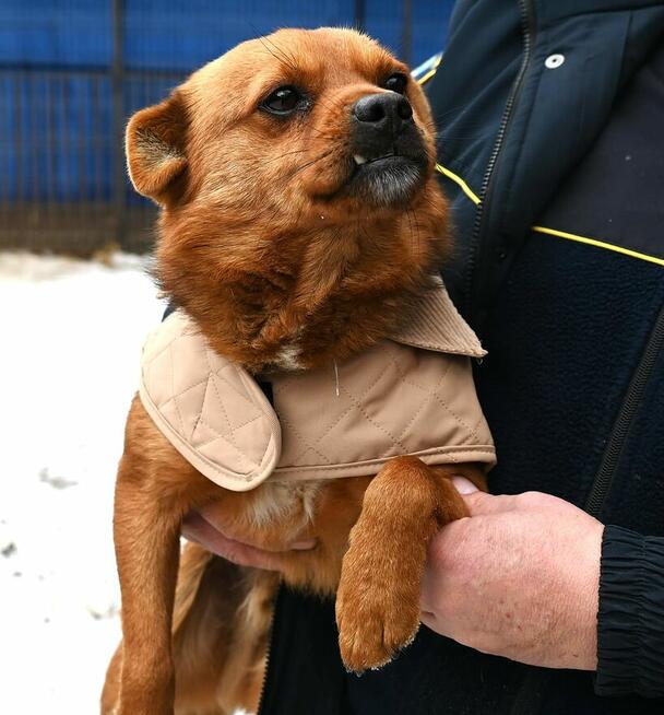 To mały ok. 9 kg piesek, który lada moment trafi do schroniska w Pawłowie. A znów idą mrozy Ząbek siedzi teraz w kojcu ...